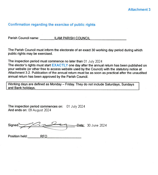 Local council name: ______ILAM PARISH COUNCIL_____________________________
